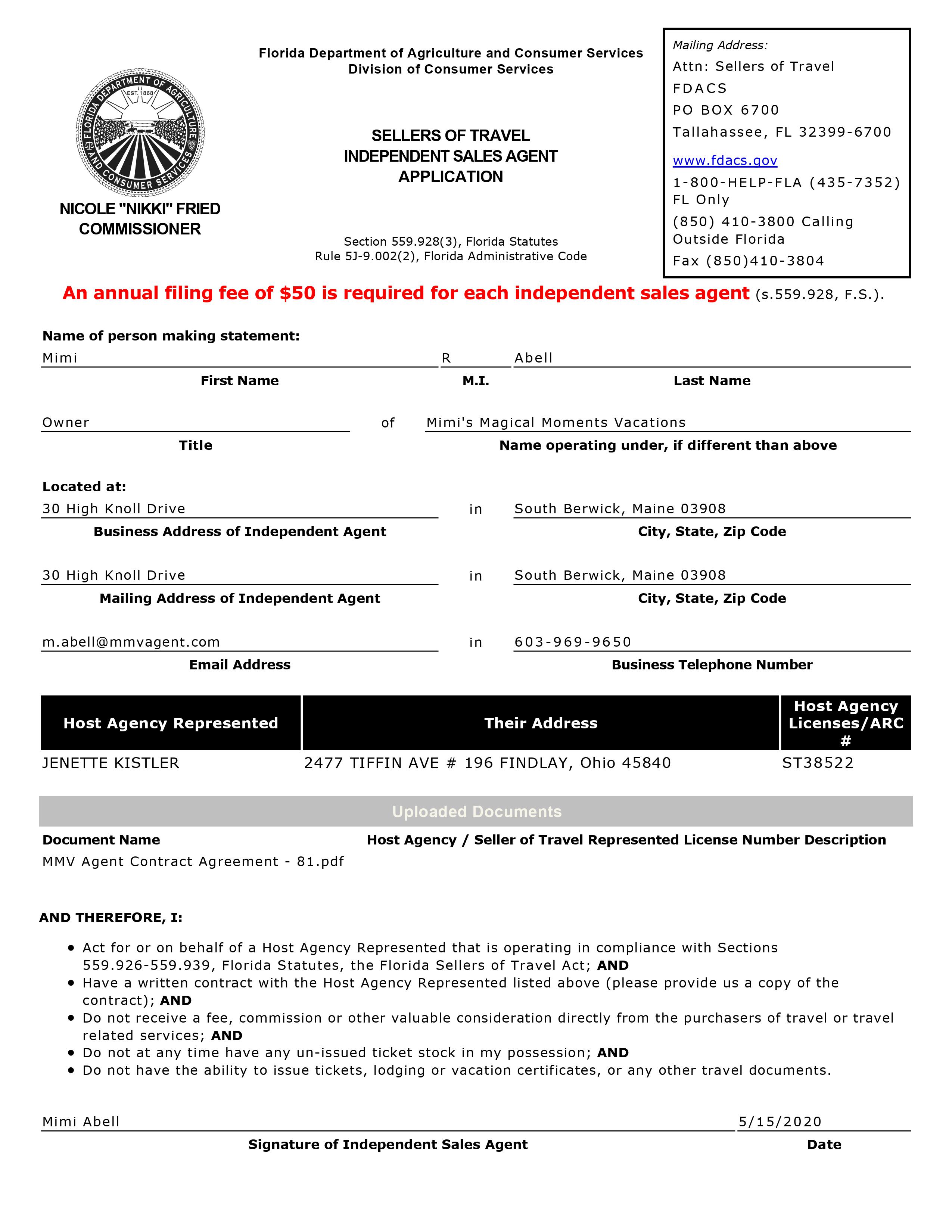 Seller of Travel Certificate 2020